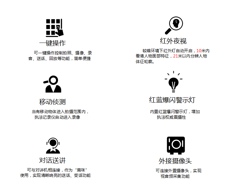 PA视讯官网DSJ-200F 执法仪(法院/政府/城管)拍摄像素高达5000万,广角镜头137,拍摄画面精细而全面,大容量电池支持陆续在工作12小时不断电